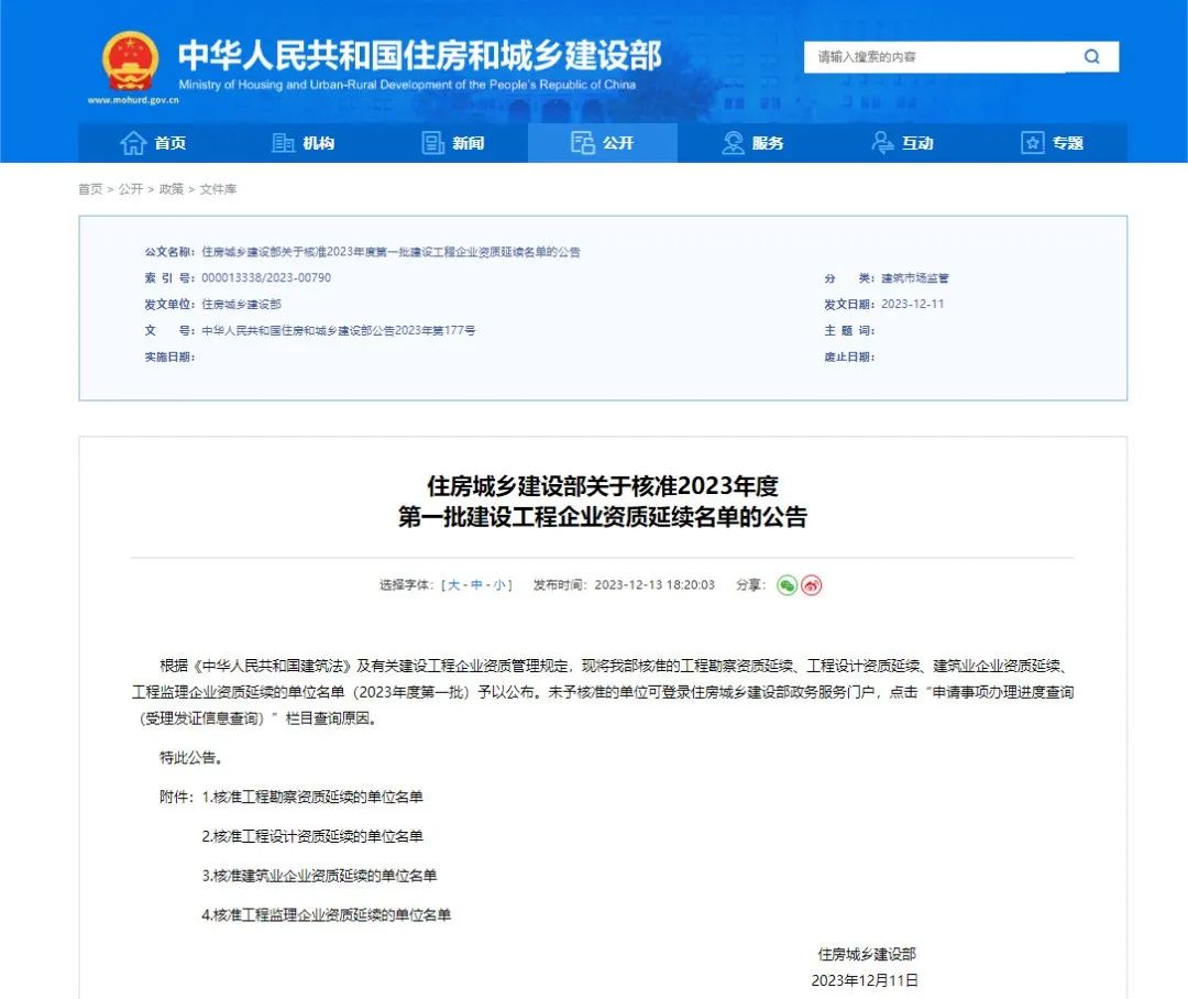 近日,住房城乡建设部公布了2023年度第二批建设工程企业资质延续核准名单,集团子公司湖南警安工程顺利通过建筑装饰工程设计专项甲级资质延续核准。